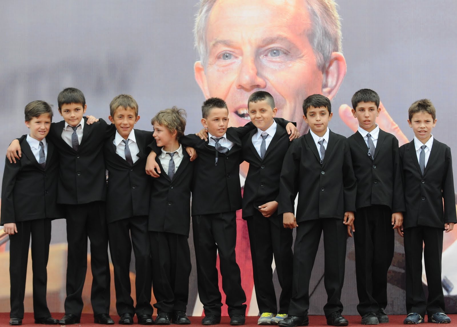 On this picture you can see nine Kosovo Albanians children that are named after Great Britain-Prime Minister at that time Tony Blair, who is considered a war hero in Kosovo for his help dedicated to Kosovo freedom.